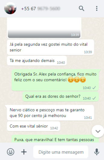 Em caso de dúvidas, nossos especialistas estão disponíveis no WhatsApp para responder a todas as suas perguntas e fornecer orientações diretas e te guiar durante a compra do Vital Sênior.